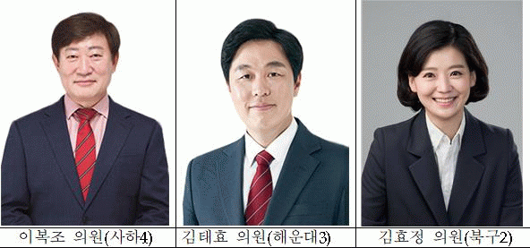 ºÎ»ê½ÃÀÇȸ ¼Ò¼Ó ÀÇ¿ø °¡¿îµ¥, Á¾ÇÕÆò°¡ °á°ú °¡Àå ³ôÀº Á¡¼ö¸¦ ¹ÞÀº À̺¹Á¶ ÀÇ¿ø(»çÇÏ4)°ú ±èÅÂÈ¿ ÀÇ¿ø(ÇØ¿î´ë3)ÀÌ ÃÖ¿ì¼öÀÇ¿øÀ¸·Î ¼±Á¤µÆ´Ù.