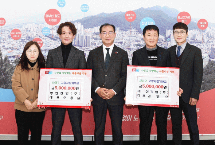 [´º½ºÅë °û¸íÈÆ ±âÀÚ]ºÎ»ê »ç»ó±¸´Â 12¿ù 10ÀÏ °ü³» »ýȰÆó±â¹° ¼öÁý¡¤¿î¹Ý ´ëÇà¾÷üÀΠû½Å»ê¾÷(ÁÖ) ½Å¿ë¼ú ´ëÇ¥¿Í ´ë¼º±â¾÷(ÁÖ) ±è¿µ¼ö ´ëÇ¥°¡ °¢°¢ °íÇâ»ç¶û±âºÎ±Ý 500¸¸ ¿øÀ» ±âŹÇß´Ù°í ¹àÇû´Ù. µÎ ±â¾÷ÀÇ °í¾× ±âŹÀº °íÇâ»ç¶û±âºÎÁ¦ÀÇ ÃëÁö¿¡ ±íÀÌ °ø°¨ÇØ Áö¿ª ¹ßÀü¿¡ º¸ÅÆÀÌ µÇ°íÀÚ ÇÏ´Â ÀÇÁö¿¡¼ ºñ·ÔµÆ´Ù.