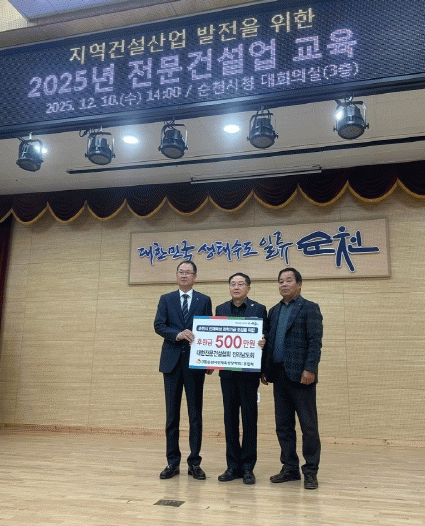 ´ëÇÑÀü¹®°Ç¼³Çùȸ Àü¶ó³²µµÈ¸¡¤¼øÃµ½ÃÇùÀÇȸ, ¼øÃµ½Ã ÀÎÀçÀ°¼ºÀåÇÐȸ¿¡ 500¸¸ ¿ø ÀåÇÐ±Ý ±âŹ
