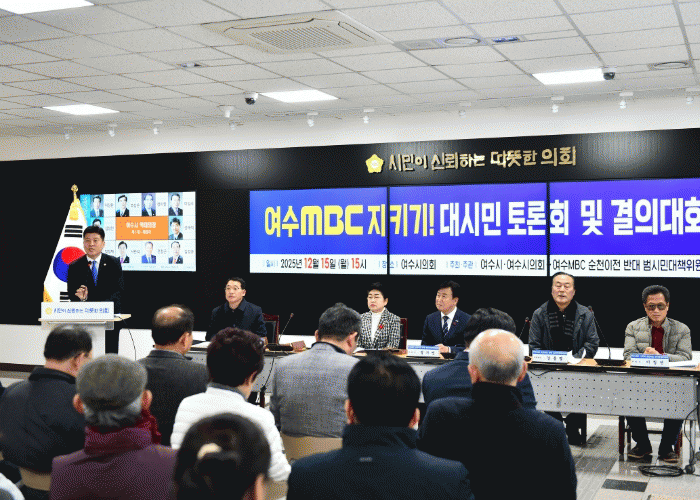 [´º½ºÅë ±è±¤¿ ±âÀÚ]¿©¼ö½ÃÀÇȸ¿¡ µû¸£¸é, ¿©¼ö½Ã¡¤¿©¼ö½ÃÀÇȸ¿Í ½Ã¹Î»çȸ´Üü·Î ±¸¼ºµÈ ¿©¼öMBC ¼øÃµ ÀÌÀü ¹Ý´ë ¹ü½Ã¹Î´ëÃ¥À§¿øÈ¸´Â 15ÀÏ ¿ÀÈÄ 3½Ã, ¿©¼ö½ÃÀÇȸ û»ç 1Ãþ ·Îºñ¿¡¼ ¡®¿©¼öMBC Áö۱â! ´ë½Ã¹Î Åä·Ðȸ ¹× °áÀÇ´ëȸ¡¯¸¦ °³ÃÖÇß´Ù.