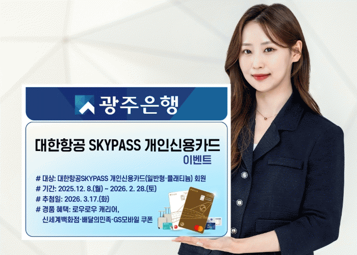 [´º½ºÅë ÃÖ¿ë¼ö ±âÀÚ]±¤ÁÖÀºÇàÀº 2025³â 12¿ù 8ÀϺÎÅÍ 2026³â 2¿ù 28ÀϱîÁö ¡®ÇϴñæÀ» ä¿ì´Â ´ëÇÑÇ×°øSKYPASS°³ÀνſëÄ«µå À̺¥Æ®¡¯¸¦ ÁøÇàÇÑ´Ù°í ¹àÇû´Ù.