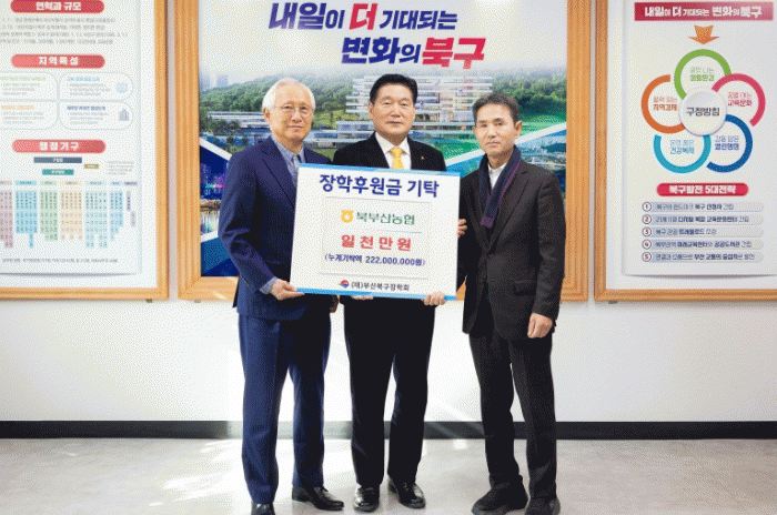[´º½ºÅë °û¸íÈÆ ±âÀÚ]ºÎ»ê ºÏ±¸´Â ºÏºÎ»ê³óÇù(Á¶ÇÕÀå À̽°É)ÀÌ Áö¿ª ÀÎÀç À°¼º°ú ±³À° º¹Áö Çâ»óÀ» À§ÇØ (Àç)ºÎ»êºÏ±¸ÀåÇÐȸ¿¡ ÀåÇбâ±Ý 1õ¸¸ ¿øÀ» ±âŹÇß´Ù°í ¹àÇû´Ù.