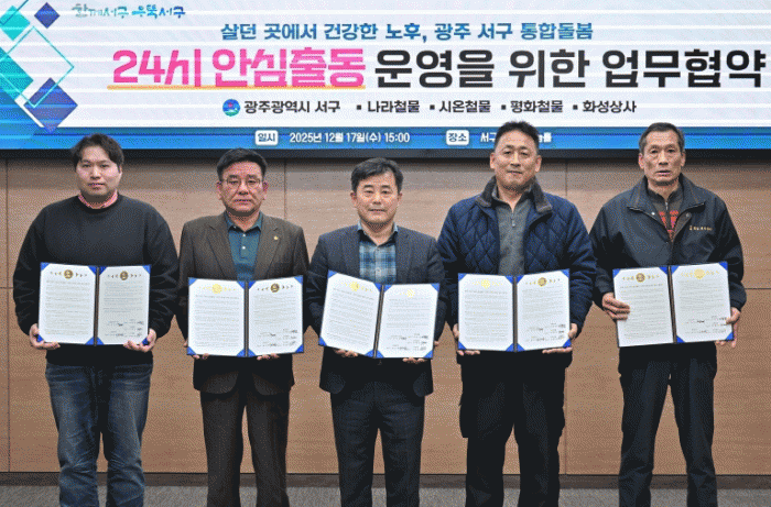[´º½ºÅë ÃÖ¿ë¼ö ±âÀÚ]±¤ÁÖ±¤¿ª½Ã ¼±¸°¡ ÁֹΠÀÏ»ó ¼Ó ºÒÆíÀ» ½Å¼ÓÇÏ°Ô ÇØ¼ÒÇϱâ À§ÇØ ÆÈÀ» °È¾îºÙ¿´´Ù. ¼±¸´Â 17ÀÏ ¼±¸Ã» ³ª´®È¦¿¡¼ °ü³» ÂøÇѰ¡°Ô 4°÷°ú ÇÔ²² ¡®24½Ã ¾È½ÉÃ⵿¡¯ »ç¾÷ÀÇ ¾ÈÁ¤Àû ¿î¿µÀ» À§ÇÑ ¾÷¹«Çù¾àÀ» ¸Î°í ºóÆ´¾ø´Â µ¹º½ ¼ºñ½º Á¦°ø¿¡ Çù·ÂÇϱâ·Î Çß´Ù. À̳¯ Çù¾à½Ä¿¡´Â ±è¼º¹è ºÎ±¸Ã»ÀåÀ» ºñ·ÔÇØ À±¼ø¼· ȼº»ó»ç ´ëÇ¥, ÀÌ¿µÀÏ ÆòÈö¹° ´ëÇ¥, ÁÖÀç½Ä ³ª¶óö¹° ´ëÇ¥, ÀÌ¿µÁÖ ½Ã¿Âö¹° ´ëÇ¥°¡ Âü¼®Çß´Ù. ÀÌ ¾÷üµéÀº ¸Å¿ù Á¤±â ±âºÎ·Î ³ª´®À» ½ÇõÇÏ´Â ¡®ÂøÇѰ¡°Ô¡¯·Î ÀÌ¿ôµ¹º½ ¿ªÇÒ¿¡µµ Àû±ØÀûÀ¸·Î Âü¿©ÇÏ°í ½Í´Ù´Â ¶æÀ» ¹àÇû´Ù.