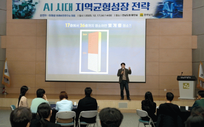 [´º½ºÅë ÃÖ¿ë¼ö ±âÀÚ]Àü¶ó³²µµ´Â 17ÀÏ µµÃ» ¿ÕÀνǿ¡¼ ÀÌÀ缺 ¹Ì·¡ºñÀü¿¬±¸¼Ò ´ëÇ¥¸¦ ÃÊÃ»ÇØ ¡®AI ½Ã´ë Áö¿ª±ÕÇü¼ºÀå Àü·«¡¯À» ÁÖÁ¦·Î °¿¬À» °³ÃÖÇß´Ù.