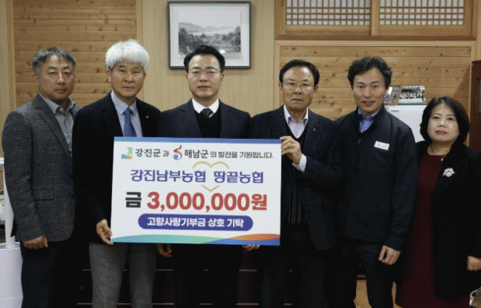[´º½ºÅë ÃÖ¿ë¼ö ±âÀÚ]°Áø³²ºÎ³óÇù°ú ÇØ³² ¶¥³¡³óÇù ÀÓÁ÷¿øµéÀÌ Áö³ 17ÀÏ °Áø±ºÃ»À» ã¾Æ °íÇâ»ç¶û±âºÎ±Ý 300¸¸¿øÀ» »óÈ£ Áö¿ª¿¡ ±âºÎÇß´Ù.