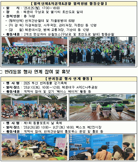 À̹ø ¼º°úº¸°íȸ´Â 2025³â ÇÑ ÇØ µ¿¾È ¿î¿µµÈ ºÎ»ê ¹Ý·Á°ß ¼øÂû´ëÀÇ È°µ¿ ¼º°ú¸¦ °øÀ¯Çϰí, Áö¿ª Ä¡¾È°ú »ýȰ¾ÈÀü ÁõÁø¿¡ ±â¿©ÇÑ ¿ì¼ö ´ë¿øÀ» °Ý·ÁÇϱâ À§ÇØ ¸¶·ÃµÆ´Ù.