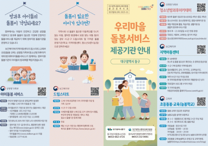 [´º½ºÅë ¾È»óµ· ±âÀÚ] ´ë±¸µ¿ºÎ±³À°Áö¿øÃ»Àº Çб³¿Í Áö¿ª»çȸ °£ µ¹º½¼ºñ½º Á¤º¸ °øÀ¯¸¦ °ÈÇϱâ À§ÇØ ¡®2026³â ´Ãº½ ¾È³»Áöµµ(¸®Çø´)¡¯¸¦ Á¦ÀÛÇÏ¿© °üÇÒ Çб³¿¡ ¹èÆ÷Çß´Ù°í 19ÀÏ(±Ý) ¹àÇû´Ù.