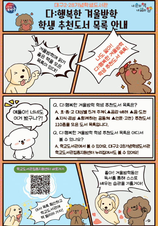 [´º½ºÅë ¾È»óµ· ±âÀÚ] ´ë±¸2¡¤28±â³äÇлýµµ¼°üÀº °Ü¿ï¹æÇÐÀ» ¸Â¾Æ ÇлýµéÀÌ µ¶¼¸¦ ÅëÇØ Á¤¼Àû ¼ºÀå°ú »ç°í·Â ½ÅÀåÀ» µµ¸ðÇÒ ¼ö ÀÖµµ·Ï Çлý ¸ÂÃãÇü Ãßõµµ¼ ¸ñ·ÏÀÎ ¡®´Ù:ÇູÇÑ °Ü¿ï¹æÇÐ Çлý Ãßõµµ¼ ¸ñ·Ï¡¯À» ¹èÆ÷ÇÑ´Ù.