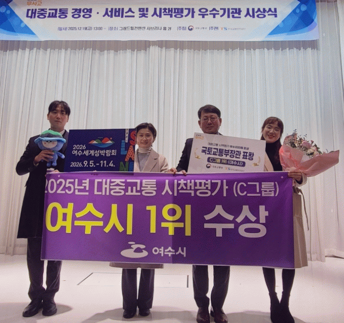 ¿©¼ö½Ã, 2025³â ´ëÁß±³Åë ½ÃÃ¥Æò°¡ Àü±¹ 1À§¡¦±¹ÅäºÎ Àå°ü»ó ¼ö»ó