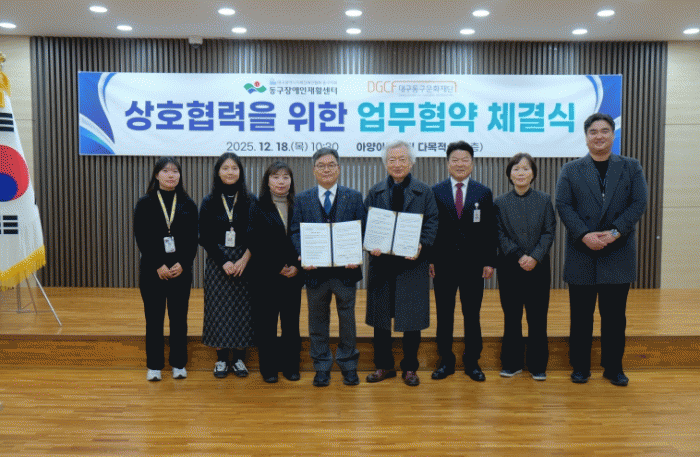 [´º½ºÅë ¾È»óµ· ±âÀÚ](Àç)´ë±¸µ¿±¸¹®ÈÀç´Ü(ÀÌ»çÀå À±¼®ÁØ)°ú µ¿±¸Àå¾ÖÀÎÀçȰ¼¾ÅÍ(¼¾ÅÍÀå ÀÌÁ¾±Ù)´Â Áö³ 12¿ù 18ÀÏ, Áö¿ª Àå¾ÖÀÎÀÇ °Ç°ÁõÁø°ú »ýȰüÀ° Ȱ¼ºÈ¸¦ À§ÇÑ ¾÷¹«Çù¾à(MOU)À» ü°áÇß´Ù.