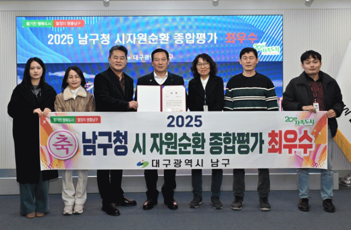 [´º½ºÅë ¾È»óµ· ±âÀÚ]´ë±¸ ³²±¸´Â 2025 ´ë±¸½Ã ÀÚ¿ø¼øÈ¯ÇàÁ¤ Á¾ÇÕÆò°¡¿¡¼ 9°³ ±¸¡¤±º °¡¿îµ¥ ¡®ÃÖ¿ì¼ö¡¯(1À§)¸¦ Â÷ÁöÇϸç, ÀÚ¿ø¼øÈ¯ ¼±µµ µµ½Ã ¸íǰ ³²±¸ÀÇ À§¾öÀ» ¾Ë·È´Ù.