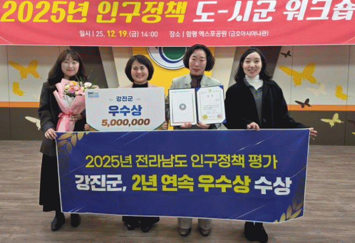 [´º½ºÅë ±è±¤¿ ±âÀÚ]°Áø±ºÀÌ Àü¶ó³²µµ°¡ ½Ç½ÃÇÑ 2025³â Àα¸Á¤Ã¥ ¿ì¼ö ½Ã¡¤±º Æò°¡¿¡¼ ¡®¿ì¼ö»ó¡¯À» ¼ö»óÇß´Ù.