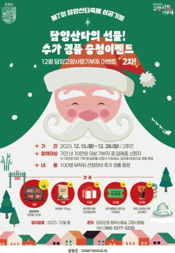 À̺¥Æ® °ü·ÃÇÑ ÀÚ¼¼ÇÑ ³»¿ëÀº ´ã¾ç±º °ø½Ä ´©¸®Áý ¹× SNS¿¡¼ È®ÀÎÇÒ ¼ö ÀÖ´Ù.