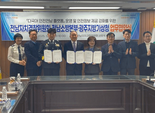 [´º½ºÅë ±è±¤¿ ±âÀÚ]Àü³²¼Ò¹æº»ºÎ´Â ¿Ü±¹Àΰú µµ¹Î ¸ðµÎ°¡ À糡¤»ç°í¡¤±â»ó À§Çè¿¡ ½Å¼ÓÈ÷ ´ëÀÀÇÒ ¼ö ÀÖµµ·Ï Àü³²ÀÚÄ¡°æÂûÀ§¿øÈ¸, ±¤ÁÖÁö¹æ±â»óû°ú ¾÷¹«Çù¾à(MOU)À» ü°áÇϰí, ´Ù±¹¾î ¾ÈÀüÀü³² ¾ÛÀ» ÅëÇÑ ¾ÈÀüÁ¤º¸ Á¦°øÀ» ÇÑÃþ °ÈÇÑ´Ù°í 23ÀÏ ¹àÇû´Ù.