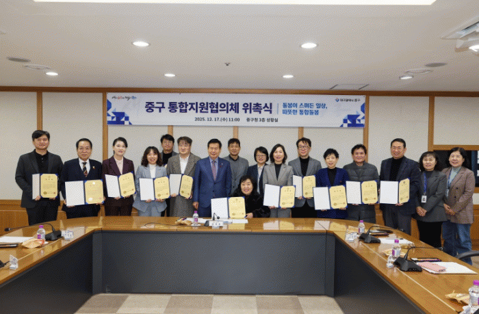 [´º½ºÅë ¾È»óµ· ±âÀÚ]´ë±¸ Áß±¸´Â Áö³ 17ÀÏ ±¸Ã» »óȲ½Ç¿¡¼ ÅëÇÕµ¹º½»ç¾÷ ÃßÁøÀ» À§ÇØ »õ·Ó°Ô ±¸¼ºµÈ Á¦1±â ÅëÇÕÁö¿øÇùÀÇü À§¿ø 19¸í¿¡°Ô À§ÃËÀåÀ» ¼ö¿©Çϰí, ¡®Á¦1±â ÅëÇÕÁö¿øÇùÀÇü À§¿ø À§Ã˽ġ¯À» °³ÃÖÇß´Ù.