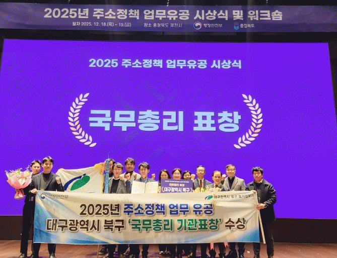[´º½ºÅë ¾È»óµ· ±âÀÚ]´ë±¸ ºÏ±¸Ã»Àº 2025³â ÁÖ¼ÒÁ¤Ã¥À» ¼º°øÀûÀ¸·Î ÃßÁøÇÑ °ø·Î¸¦ ÀÎÁ¤¹Þ¾Æ ±¹¹«ÃѸ® ±â°ü ǥâÀ» ¼ö»óÇß´Ù.