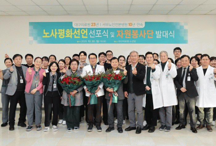 ÇÑÆí, ´ë±¸ÀÇ·á¿ø¿¡¼ ¿î¿µ ÁßÀÎ ´ë±¸±¤¿ª½Ã ¼ºÎ³ëÀÎÀü¹®º´¿ø ³ëµ¿Á¶ÇÕµµ ÇÔ²² Çà»ç¿¡ Âü¼®ÇØ 10³â ¿¬¼Ó ³ë»çÆòȸ¦ ¼±¾ðÇϰí, ÀÇ·á¿øÀÇ Àü¹ÝÀûÀÎ ³ë»ç°ü°è ¾ÈÁ¤È¿¡ ÈûÀ» º¸ÅÉ´Ù.
