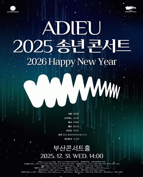 [´º½ºÅë °û¸íÈÆ ±âÀÚ]Ŭ·¡½ÄºÎ»êÀº 2025³â ºÎ»êÄܼƮȦÀÇ ¼º°øÀûÀÎ °³°ü°ú ¿Ï¼ºµµ ³ôÀº Ã¹ÇØ¸¦ ÇÔ²²ÇÑ ½Ã¹Îµé¿¡°Ô °¨»çÀÇ ¸¶À½À» ÀüÇϱâ À§ÇØ ¿À´Â 12¿ù 31ÀÏ ¿ÀÈÄ 2½Ã ºÎ»êÄܼƮȦ¿¡¼ '¾Æµà(ADIEU) 2025 ¼Û³â ÄܼƮ'¸¦ °³ÃÖÇÑ´Ù°í ¹àÇû´Ù.