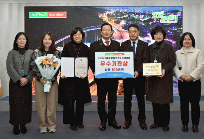 [´º½ºÅë ¾È»óµ· ±âÀÚ]´ë±¸ ³²±¸´Â ½ÄǰÀǾàǰ¾ÈÀüó¿¡¼ ÁÖ°üÇÑ ¡®2025³â ½ÄÁßµ¶ ¿¹¹æ°ü¸® Æò°¡¡¯¿¡¼ ¿ì¼ö±â°üÀ¸·Î ¼±Á¤µÅ ±â°ü ǥâÀ» ¹Þ¾Ò´Ù°í ¹àÇû´Ù.