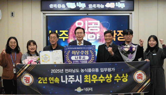 ³ªÁֽð¡ Àü¶ó³²µµ ÁÖ°ü ¡®2025 ³ó½ÄǰÀ¯Åë ¾÷¹«Æò°¡¡¯¿¡¼ 2³â ¿¬¼Ó ÃÖ¿ì¼ö»óÀ» ¼ö»óÇß´Ù.