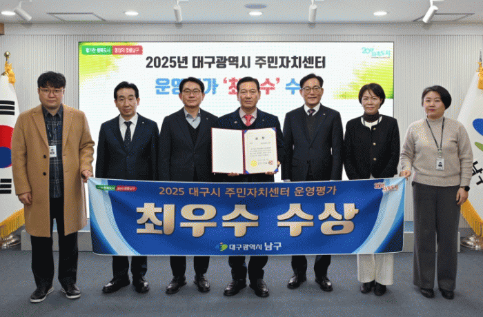 [´º½ºÅë ¾È»óµ· ±âÀÚ]´ë±¸ ³²±¸´Â 2025 ´ë±¸½Ã ÁÖ¹ÎÀÚÄ¡¼¾ÅÍ ¿î¿µÆò°¡¿¡¼ 9°³ ±¸¡¤±º °¡¿îµ¥ ¡®ÃÖ¿ì¼ö¡¯(1À§) ±â°üÀ¸·Î ¼±Á¤µÇ´Â ¿µ¿¹¸¦ ¾È¾Ò´Ù.