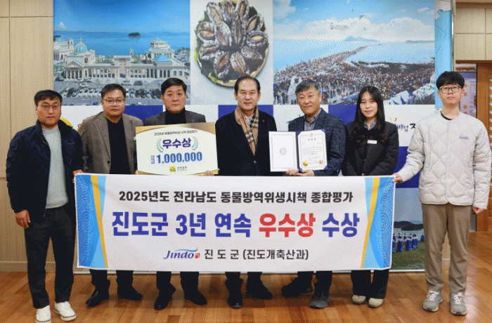 [´º½ºÅë ±è±¤¿ ±âÀÚ]Áøµµ±ºÀº Àü¶ó³²µµ¿¡¼ ÁÖ°üÇÑ ¡®2025³â µ¿¹°¹æ¿ªÀ§»ý½ÃÃ¥ Á¾ÇÕÆò°¡¡¯¿¡¼ ¿ì¼ö»óÀ» ¹ÞÀ¸¸ç, 3³â ¿¬¼Ó ¿ì¼ö Áö¹æÀÚÄ¡´Üü·Î ¼±Á¤µÆ´Ù.
