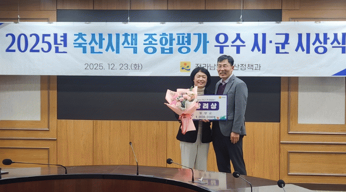 [´º½ºÅë ±è±¤¿ ±âÀÚ] ´ã¾ç±ºÀÌ Àü¶ó³²µµ°¡ ÁÖ°üÇÑ ¡®2025³â Ãà»êÁ¤Ã¥ ½ÃÃ¥Æò°¡¡¯¿¡¼ ¿ì¼öÇÑ ¼º°ú¸¦ ÀÎÁ¤¹Þ¾Æ Àå·Á»óÀ» ¼ö»óÇß´Ù°í ¹àÇû´Ù.