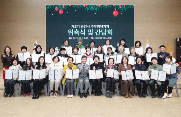 ÇÑÆí, ±¤¾ç½Ã´Â ½Ã¹Î°úÀÇ ¼ÒÅë °È¸¦ À§ÇØ 2012³âºÎÅÍ ÁÖºÎ¸í¿¹±âÀÚ Á¦µµ¸¦ ¿î¿µÇØ ¿À°í ÀÖÀ¸¸ç, ¾ÕÀ¸·Îµµ Á¤±â °£´ãȸ¿Í ¿ª·® °È ±³À°, ¼±ÁøÁö °ßÇÐ µîÀ» ÅëÇØ ÁÖºÎ¸í¿¹±âÀÚÀÇ È°µ¿À» Áö¼ÓÀûÀ¸·Î Áö¿øÇÒ °èȹÀÌ´Ù.