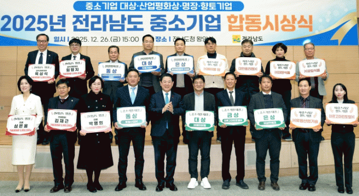 ±è¿µ·Ï Àü¶ó³²µµÁö»ç°¡ 26ÀÏ µµÃ» ¿ÕÀνǿ¡¼ ¿¸° 2025³â Áß¼Ò±â¾÷ ÇÕµ¿ ½Ã»ó½Ä¿¡¼ Àüü ¼ö»óÀÚµé°ú ±â³äÃÔ¿µÀ» Çϰí ÀÖ´Ù.