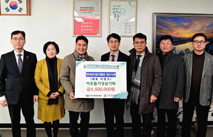 Çѱ¹Àü±â°ø»çÇùȸ ´ë±¸½Ãȸ´Â Áö³ 26ÀÏ, µ¿±¸Ã»À» ¹æ¹®ÇØ ¿¬¸»À» ¸Â¾Æ ¾î·Á¿î ÀÌ¿ôÀ» µ½±â À§ÇÑ ¼º±Ý 450¸¸ ¿øÀ» Àü´ÞÇß´Ù.