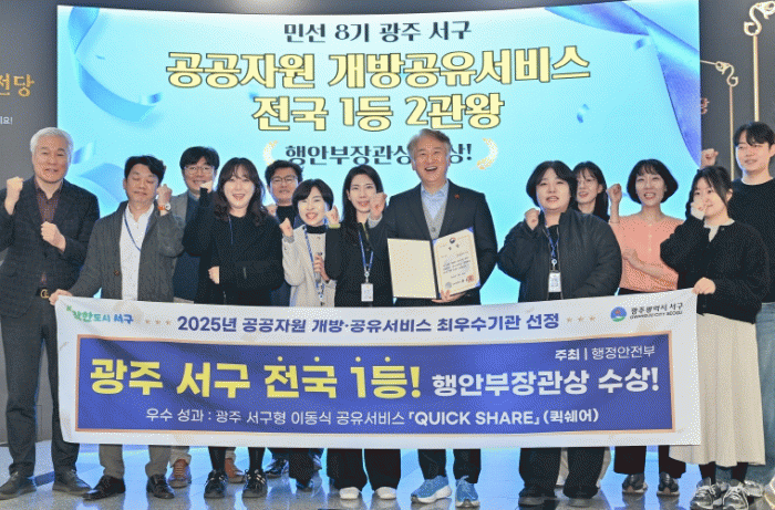 [´º½ºÅë ÃÖ¿ë¼ö ±âÀÚ]±¤ÁÖ±¤¿ª½Ã ¼±¸ÀÇ »ýȰ¹ÐÂøÇü °øÀ¯Á¤Ã¥ ¡®Ãµ¿ø ÇÇÅ©´Ð¡¯ÀÌ Àü±¹ ¹«´ë¿¡¼ ÁÖ¸ñ¹Þ¾Ò´Ù. ¼±¸´Â ÇàÁ¤¾ÈÀüºÎ°¡ ÁÖ°üÇÑ ¡®2025³â °ø°øÀÚ¿ø °³¹æ¡¤°øÀ¯¼ºñ½º ½ÇÀûÆò°¡¡¯¿¡¼ Àü±¹ ÃÖ¿ì¼ö ±â°üÀ¸·Î ¼±Á¤µÅ ÇàÁ¤¾ÈÀüºÎ Àå°ü»óÀ» ¼ö»óÇß´Ù°í 29ÀÏ ¹àÇû´Ù.