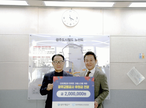 [´º½ºÅë ÃÖ¿ë¼ö ±âÀÚ] ±¤ÁÖ±³Åë°ø»ç°¡ ÃÖ±Ù ±¤Áֽà ¼±¸ ¸¶¸¤µ¿ º»»ç¿¡¼ (»ç)Çѱ¹ ¹éÇ÷º´¼Ò¾Æ¾ÏÇùȸ ±¤ÁÖÀü³²Áöȸ¿¡ ÀÓÁ÷¿øµéÀÌ Á¤¼ºÀ¸·Î ¸ðÀº ¼º±Ý 200¸¸ ¿øÀ» Àü´ÞÇϸç ȯ¾ÆµéÀÇ µû¶æÇÑ ¿¬¸»¿¬½Ã¸¦ ±â¿øÇß´Ù.