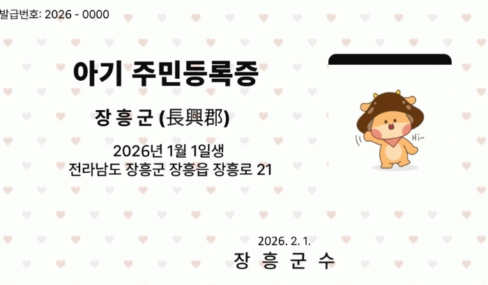 ÀåÈﱺ, ¡®¾Æ±â Áֹεî·ÏÁõ¡¯ ¹«·á ¹ß±Þ ¼ºñ½º ½ÃÇà