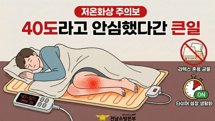 ÀÌ¿¡ Àü³²¼Ò¹æº»ºÎ´Â ¾ÈÀüÇÑ °Ü¿ï¹ãÀ» À§ÇÑ 3´ë ¼öÄ¢À¸·Î ¡ãÇǺΠÁ÷Á¢ Á¢ÃË ÇÇÇϱâ(¾ãÀº À̺ҡ¤ÆÐµå »ç¿ë) ¡ãÃëħ ½Ã ŸÀÌ¸Ó ¼³Á¤ »ýÈ°È ¡ã¶óÅØ½º ħ±¸ È¥¿ë ±ÝÁö µîÀ» Á¦½ÃÇß´Ù.