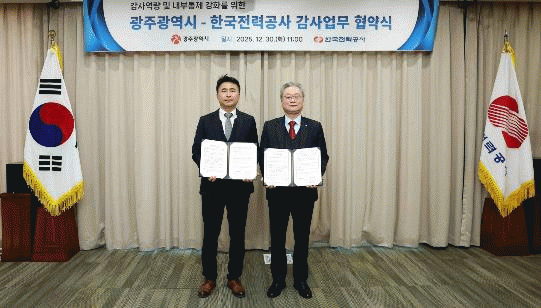 [´º½ºÅë ÃÖ¿ë¼ö ±âÀÚ]Çѱ¹Àü·Â °¨»ç½ÇÀº 12¿ù 30ÀÏ ¡®±¤ÁÖ±¤¿ª½Ã °¨»çÀ§¿øÈ¸¡¯°ú °¨»ç Àü¹®¼º Á¦°í¿Í ³»ºÎÅëÁ¦ °È¸¦ À§ÇÑ ¾÷¹«Çù¾à(MOU)À» ü°áÇß´Ù.
