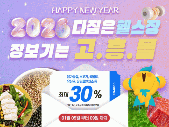 [´º½ºÅë ±è±¤¿ ±âÀÚ]°íÈﱺÀÌ ¿î¿µÇÏ´Â ¿Â¶óÀÎ ³ó¼öÃàÆ¯»ê¹° ¼îÇθô °íÈï¸ôÀÌ »õÇØ ´ÙÁü ½ÃÁðÀ» ¸Â¾Æ 2026³â 1¿ù 5ÀϺÎÅÍ 9ÀϱîÁö 5Àϰ£, ÃÖ´ë 30% ÇÒÀÎ ÇýÅÃÀ» Á¦°øÇϴ Ưº° ±âȹÀü ¡®´ÙÁüÀº ÇコÀå, À庸±â´Â °íÈï¸ô¡¯À» ÁøÇàÇÑ´Ù.