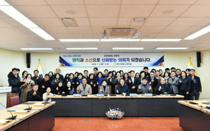 [´º½ºÅë ±è±¤¿ ±âÀÚ]¿©¼ö½ÃÀÇȸ´Â 1¿ù 2ÀÏ ÀÇȸ ¼ÒȸÀǽǿ¡¼ 2026³â ½Ã¹«½ÄÀ» °³ÃÖÇϰí, º»°ÝÀûÀÎ ÀÇÁ¤È°µ¿¿¡ ¾Õ¼ ¹ÝºÎÆÐ¡¤Ã»·Å¼¾àÀ» ½Ç½ÃÇÏ¸ç »õÇØ ÀÇÁ¤ ¿î¿µÀÇ Ãâ¹ßÀ» ¾Ë·È´Ù.