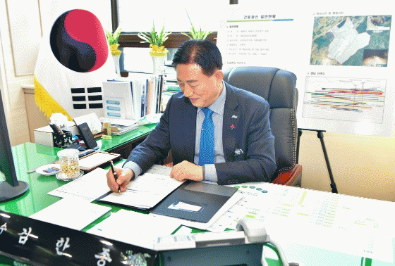 [´º½ºÅë ÃÖ¿ë¼ö ±âÀÚ]À强±ºÀÌ »õÇØ ù °áÀç ¾È°ÇÀ¸·Î °í·Á½Ã¸àÆ® °Çµ¿±¤»ê °³¹ß Áö¿ø¿¡ °üÇÑ ´ëÅë·É ¼Çѹ®À» äÅÃÇß´Ù.