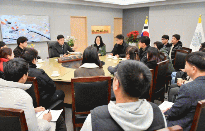 [´º½ºÅë ÃÖ¿ë¼ö ±âÀÚ] ´ã¾ç±ºÀº Áö³ 5ÀÏ ´ã¾ç±ºÃ» ¼Ò¼â¿ø½Ç¿¡¼ Áö¿ª ³ó¾÷ÀÇ ¹Ì·¡¸¦ À̲ø¾î°¥ û³â ³ó¾÷Àΰú ³ó¾÷»ç°üÇб³ Á¹¾÷»ýµéÀÌ Âü¼®ÇÑ °¡¿îµ¥, ÇöÀåÀÇ ¸ñ¼Ò¸®¸¦ Á÷Á¢ µè°í ¹ßÀü ¹æ¾ÈÀ» ¸ð»öÇϱâ À§ÇÑ ¡®Ã»³â ³ó¾÷ÀÎ ¼ÒÅë °£´ãȸ¡¯¸¦ °³ÃÖÇß´Ù.