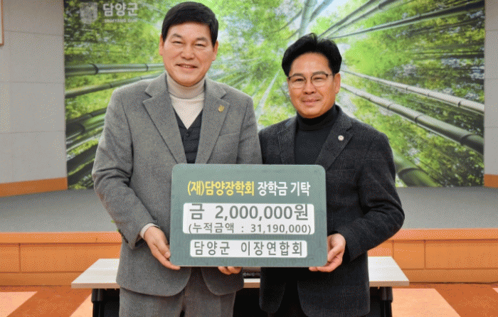 [´º½ºÅë ±è±¤¿ ±âÀÚ] (Àç)´ã¾çÀåÇÐȸ´Â Áö³ 6ÀÏ ´ã¾ç±º ÀÌÀ忬ÇÕȸ(ȸÀå Á¤¿ë¿À)¿¡¼ Áö¿ªÀÎÀç À°¼ºÀ» À§ÇÑ ÀåÇÐ±Ý 200¸¸ ¿øÀ» ±âŹÇß´Ù°í ¹àÇû´Ù.