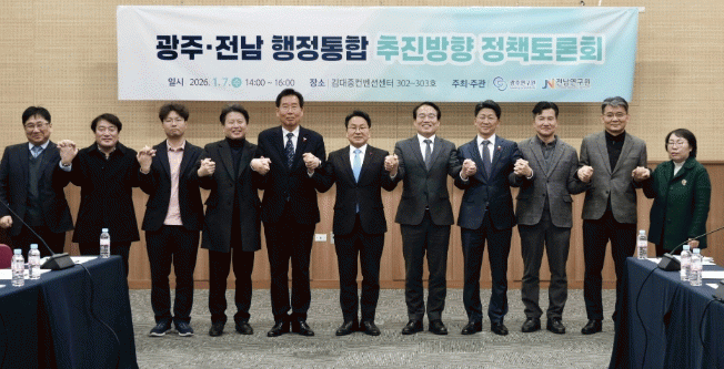 [´º½ºÅë ±è±¤¿ ±âÀÚ]±¤ÁÖ¿¬±¸¿ø°ú Àü³²¿¬±¸¿øÀº 7ÀÏ ¿ÀÈÄ ±è´ëÁßÄÁº¥¼Ç¼¾ÅÍ¿¡¼ ±¤ÁÖ¡¤Àü³² ÇàÁ¤ÅëÇÕ ÃßÁø Çʿ伺¿¡ ´ëÇÑ »çȸÀû °ø°¨´ë¸¦ È®º¸ÇÏ°í ¼º°øÀû ÅëÇÕ ¹æ¾ÈÀ» ¸ð»öÇϱâ À§ÇØ ¡®±¤ÁÖ¡¤Àü³² ÇàÁ¤ÅëÇÕ ÃßÁø ¹æÇâ Á¤Ã¥Åä·Ðȸ¡¯¸¦ °³ÃÖÇß´Ù.