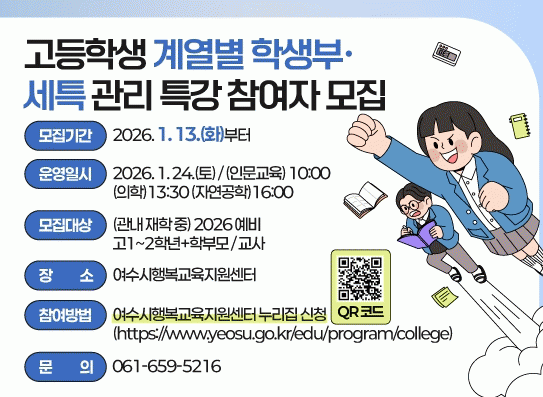 [´º½ºÅë ÃÖ¿ë¼ö ±âÀÚ]¿©¼ö½Ã°¡ ¿À´Â 1¿ù 24ÀÏ °ü³» ¿¹ºñ °í1, 2Çгâ°ú Çкθ𡤱³»ç¸¦ À§ÇØ ¿©¼ö½ÃÇູ±³À°Áö¿ø¼¾ÅÍ¿¡¼ ¹Ì¸® ÁغñÇÏ´Â ¡®°è¿º° ÇлýºÎ?¼¼Æ¯ °ü¸® Ư°¡¯À» ¿î¿µÇÑ´Ù.