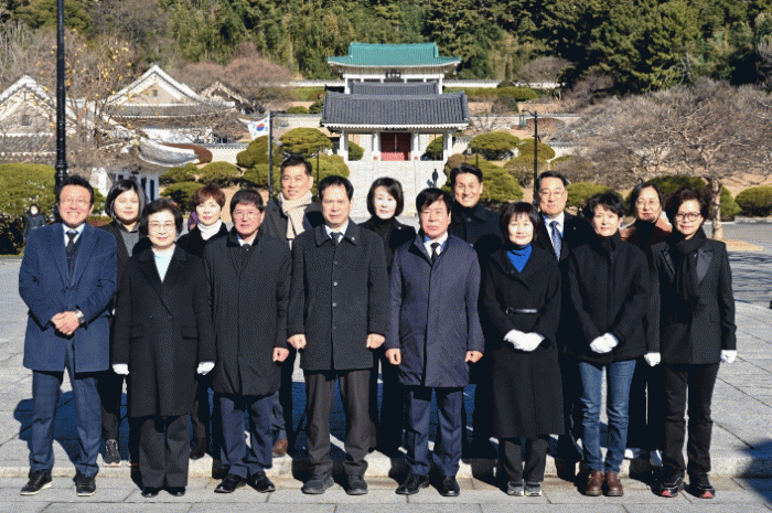 ÇØ¿î´ë±¸ÀÇȸ ÀÇ¿øµéÀÌ 8ÀÏ Ãæ·Ä»ç Âü¹è ÈÄ ±â³äÃÔ¿µÀ» Çϰí ÀÖ´Ù.
