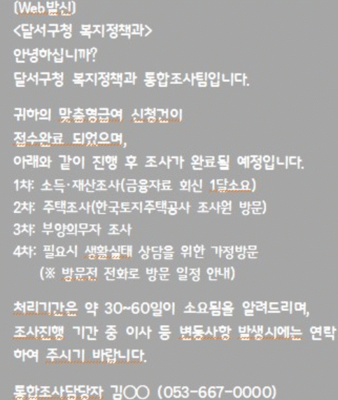 [´º½ºÅë ¾È»óµ· ±âÀÚ]´ë±¸ ´Þ¼±¸´Â ¸ÂÃãÇü º¹Áö±Þ¿©(»ý°è¡¤ÀǷᡤÁÖ°Å¡¤±³À°) ½ÅûÀÎÀ» ´ë»óÀ¸·Î Á¶»ç ÁøÇà »óȲÀ» ¾È³»ÇÏ´Â ¡®¾Ë¸²Åå ¼ºñ½º¡¯¸¦ 2026³â¿¡µµ È®´ë ½ÃÇàÇÑ´Ù.