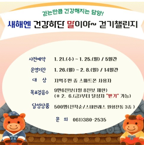 1¿ù 26ÀϺÎÅÍ 2¿ù 8ÀϱîÁö ¡®»õÇØ¿£ °Ç°ÇÏ´Ü ¸»À̾ߡ¯ °È±â 縰Áö ÁøÇà