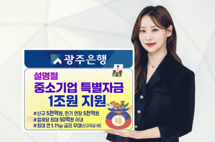 [´º½ºÅë ±è±¤¿ ±âÀÚ]±¤ÁÖÀºÇàÀº ¼³ ¸íÀýÀ» ¾ÕµÎ°í ÀÚ±Ý ¿î¿ë¿¡ ¾î·Á¿òÀ» °Þ´Â Áö¿ª Áß¼Ò±â¾÷ ¹× ¼Ò»ó°øÀÎÀ» À§ÇØ, 1¿ù 15ÀϺÎÅÍ 2¿ù 27ÀϱîÁö ÃÑ 1Á¶ ¿ø ±Ô¸ðÀÇ ¡®2026³â ¼³ ¸íÀý Áß¼Ò±â¾÷ Ưº°Àڱݡ¯À» Áö¿øÇÑ´Ù°í ¹àÇû´Ù.