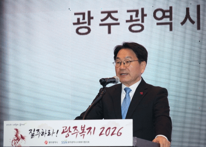 °±âÁ¤ ±¤ÁÖ±¤¿ª½ÃÀåÀÌ 16ÀÏ ¼±¸ ¿þµù±×·ì À§´õ½º ±¤ÁÖ¿¡¼ ¿¸° 2026³â ±¤ÁÖº¹Áö ½Å³âÀλçȸ¿¡ Âü¼®ÇØ Ãà»ç¸¦ Çϰí ÀÖ´Ù. /±¤ÁÖ±¤¿ª½Ã Á¦°ø