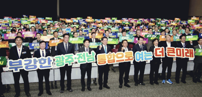 ±¤ÁÖ¡¤Àü³² ÇàÁ¤ÅëÇÕ ÃßÁø ¹ü½Ãµµ¹ÎÇùÀÇȸ°¡ 16ÀÏ ±è´ëÁß ÄÁº¥¼Ç¼¾ÅÍ¿¡¼ ¹ß´ë½ÄÀ» °®Àº µÚ, ¡®ºÎ°ÇÑ ±¤ÁÖ?Àü³² ÅëÇÕÀ¸·Î ¿©´Â ´õ Å« ¹Ì·¡¡¯ ¶õ ±Û±Í¸¦ µé¾î º¸À̰í ÀÖ´Ù.