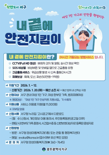 ÀÌ »ç¾÷Àº ¿©¼º 1ÀÎ °¡±¸, ¿©¼º ÇѺθ𠰡Á¤, ¹üÁËÇÇÇØ ¿©¼ºÀ» ´ë»óÀ¸·Î CCTV¡¤ºñ»óº§ ¼³Ä¡, ±ä±ÞÃ⵿ ¼ºñ½º µîÀ» ¿¬°èÇÑ »ýȰ¹ÐÂøÇü ÁְžÈÀü ¼ºñ½º´Ù. Âü¿©ÀÚ´Â ¡ãCCTV¸¦ ÅëÇÑ Çö°ü ¾Õ ½Ç½Ã°£ ¿µ»ó È®ÀÎ ¡ã³¸¼± »ç¶÷ ¹èȸ °¨Áö ½Ã ÀÚµ¿ ¾Ë¸² ¡ãºñ»ó ¹öư ¶Ç´Â ¸ð¹ÙÀÏ ¾ÛÀ» ÅëÇÑ ±ä±Þ Ã⵿ ¿äû ¡ã24½Ã°£ ±ä±Þ Ã⵿ ¼ºñ½º ¿¬°è ¡ãÇö°ü¹® ÃâÀÔ ³»¿ª È®ÀÎ ±â´É µîÀ» ÀÌ¿ëÇÒ ¼ö ÀÖ´Ù.
