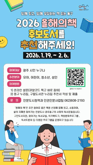 [´º½ºÅë ÃÖ¿ë¼ö ±âÀÚ]±¤ÁÖ µ¿±¸´Â ÇÑ ÇØ µ¿¾È ½Ã¹Î°ú ÇÔ²² ÀÐÀ» 2026³â ¡®Ã¥ Àд µ¿±¸ ¿ÃÇØÀÇ Ã¥¡¯ ¼±Á¤À» À§ÇØ Èĺ¸ µµ¼ ÃßõÀ» ¿À´Â 2¿ù 6ÀϱîÁö Á¢¼öÇÑ´Ù°í ¹àÇû´Ù.